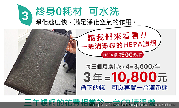 對於0耗材這點其實我持保留意見,所謂的0耗材是相對HEPA濾網而言無須更換濾網,但本機器還是有去除異味用的活性炭濾網,因此只能說濾網消耗比採用HEPA濾網的機種要來的低而已,況且一般家庭HEPA濾網應該也沒有要到3個月就換一次這麼頻繁,因此這點其實還是回歸自己的需求來選擇比較客觀