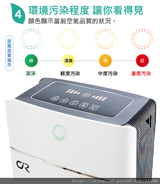 採燈號判斷污染程度各家廠商中階以上的機種已經普遍採用了,甚至更高階的會直接用數值來顯示,不過更精準的感測器也代表更高的成本,也就是售價會變的昂貴,就CRshop的定價來看,我覺得這樣已經足夠了